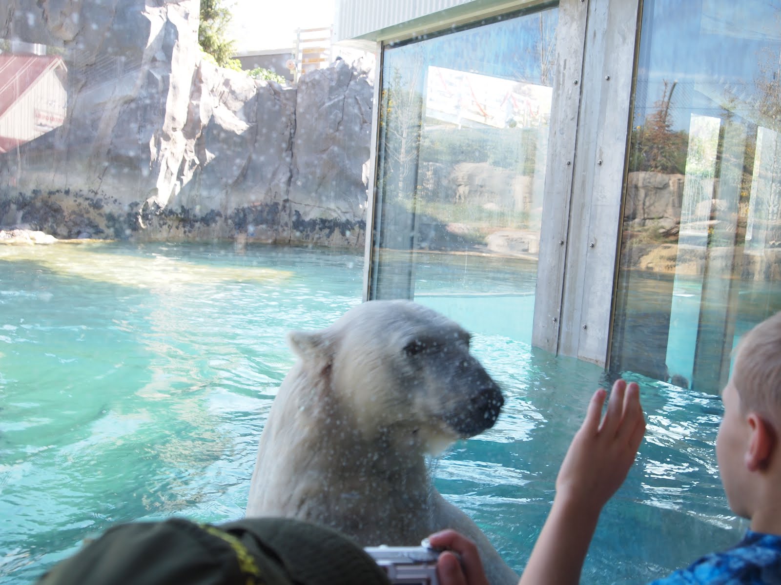 The polar bear was a show off. He would dive into the water, pop up right by the window right in front of the kids, push off backwards, repeat.